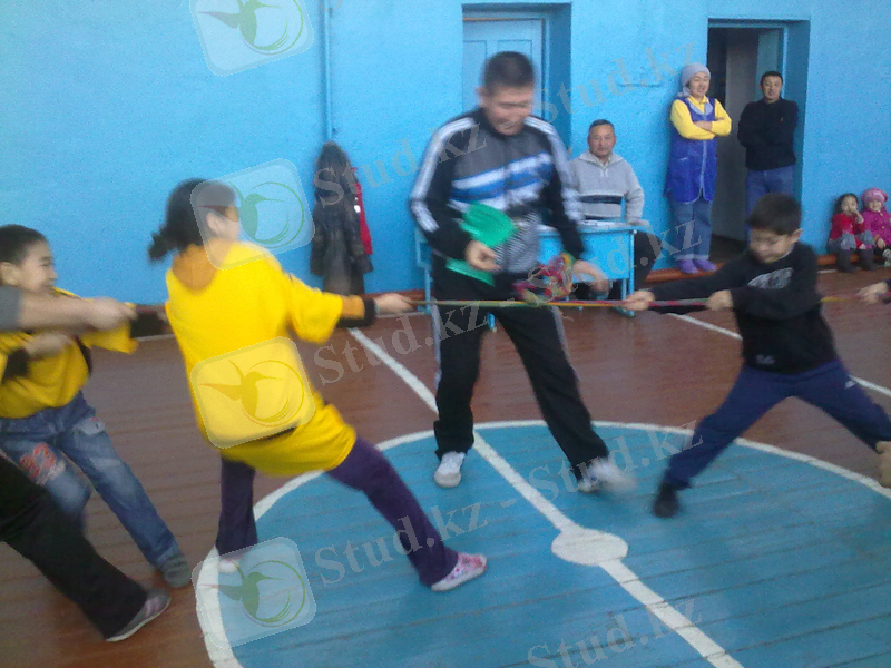- Арқан тарту. (екі топ аркрнның екі жағынан ұстап тартады. )