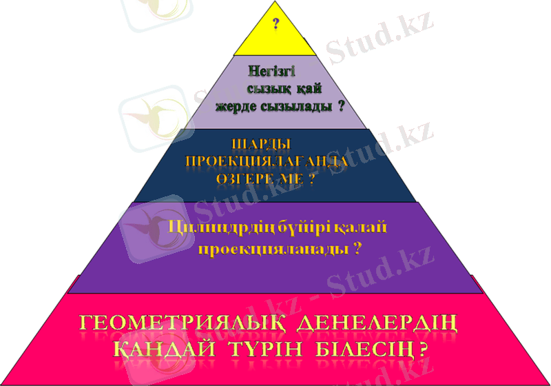 2) . Сұрақтар арқылы қйялын дамыту, сызу заңдылықтарын меңгерту, ізденістер қалыптастыру.