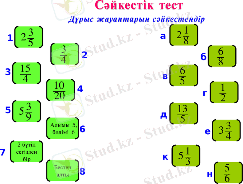 - «Джамбо» елінде . Джамбомен бірге тест орындайық. Сәйкестік тест.