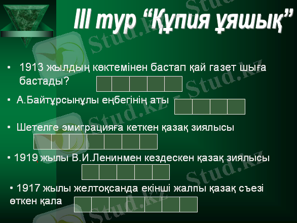 ІV тур “Тарихи көмбе” (терминдік сөздің мағынасын айту) .