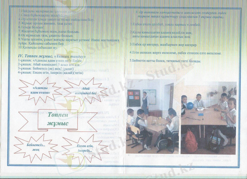 Мұның аты - еңбек» - дегендей бүгін біздер өз қалауымызша шығармашылық жұмыспен айналысамыз.