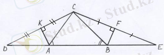 - АВ қабырғасының жалғасына екі бағыттаDA = АС және ВЕ = СВ кесінділерін саламыз.