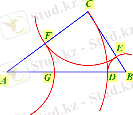кесіндісін радиус ретінде алып, доға сызамыз.