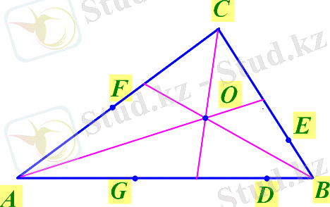Үшбұрыш төбелерінен биссектрисаларын жүргіземіз: