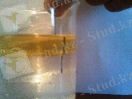 Ине алып оны стаканның дәл ортасынан майға батырамыз. Май қабатынан өткен соң ине суға да 1 см -дей еніп тұруы керек. Еегер стаканның бүйірінен қарасақ жуандығы әртүрлі бір бүтін инені көреміз: иненің суға батып тұрған астынғы бөлігі қолымызға ұстап тұрған үстінгі бөлігінен жуандау, ал, майда тұрған ортанғы бөлігі бәрінен жуан болып көріненді