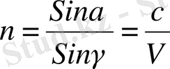 формуласымен де анықталады. С- жарықтың вакумдағы жылдамдығы, v -ортадағы жылдамдығы, Онда екі формуланы біріктіріп былай жазуға болады.