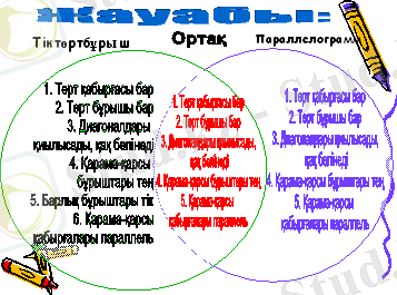 Тіктөртбұрыштың қасиеттерін айтыңыз?