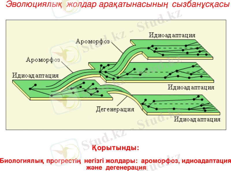 Сабақтың міндеттері: 1. Білімділік: өсімдіктер мен жануарлар эволюциясы туралы білімді кеңейту, ароморфоз, идиоадаптация, дегенерация ұғымдарын түсіндіру.