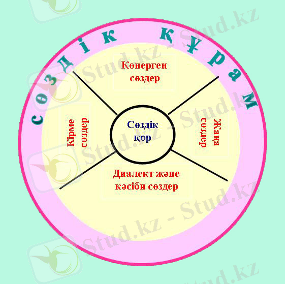 Сабақтың көрнекілігі: сөздік қор мен сөздік құрамға қатысты сызба, кірме
