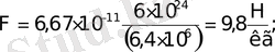Жердің массасы 6⋅10 24 кг, шардың массасы 1 кг, олардың центрлерінің ара қашықтығы жер радиусына 6, 4⋅10 6 м-ге тең. Жер мен оның үстінде жатқан шардың арасындағы тартылыс күшін есептейміз: