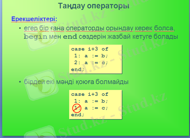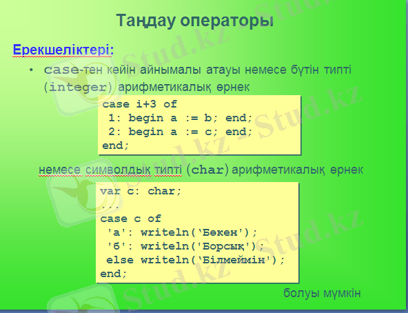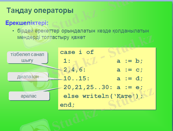 Таңдау операторының теориясы мен Pascal тіліндегі қолданылуы