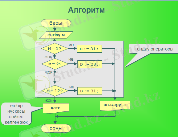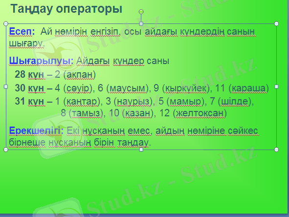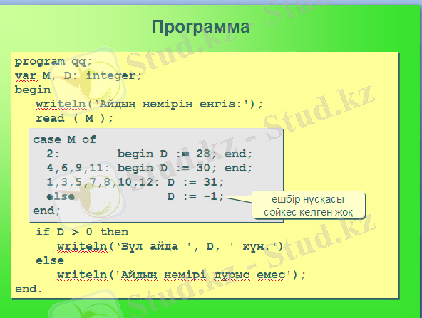 Мысал: Айдың нөмері бойынша сәйкес жыл уақытын анықтау керек.