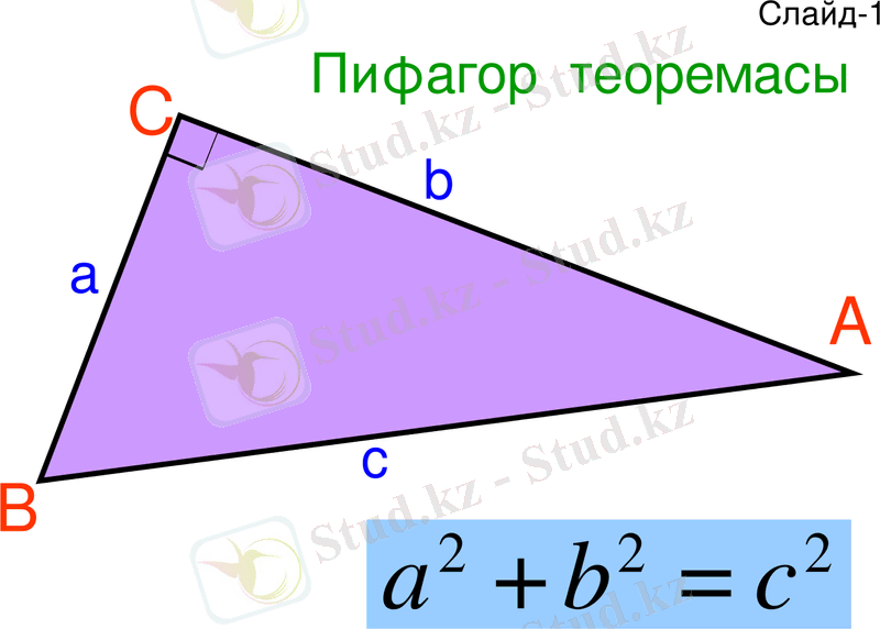 (Тікбұрышты үшбұрыш, катеттері мен гипотенузасы және формула) .