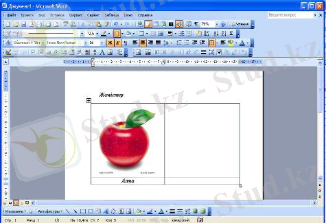 Файлдан сурет кірістіру арқылы мәтінді жазып, суреттің мәтінмен үйлесуін орнат. Символ пішімін өзгерт.