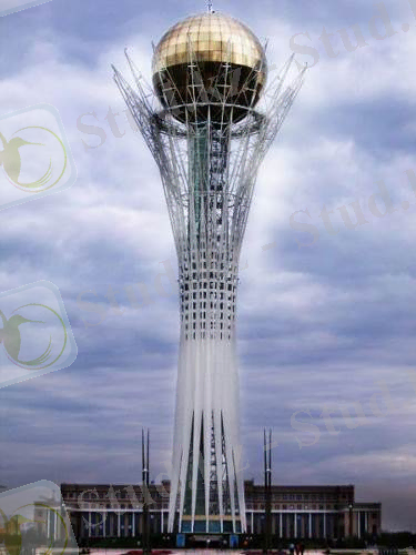 «Астана - Бәйтерек» монументінде барлығы символға құрылған, алтын шапақты күн мен оның 97 метрлік биіктігі, әлемдік жаратылыстың үш негізін білдіретін үш бөліктен тұратын ішкі сәулеті Қазақстаннан тысқары жерлерге де мәлім. Бұл темірден, шыныдан, бетоннан орнатылған алып бәйтерек, сәулеттікөзгеше ойымен, өзінің қомақтылығымен ерекшеленеді. Металл конструкцияның биіктігі 105 метр, салмағы 1000 тоннадан асады, ол жерге қағылған 500 қадаға орнатылған. Диаметрі 22 метрлік, күн сәулесінің әсерінен мың құбылатын, салмағы 300 тонналық «хамеолеон» әйнегінен жасалған шар, әлемде тұңғыш рет осындай «рекордтық» самғау биікке көтерілді. «Астана-Бәйтерекә монументі - қазақстандықтардың өміріндегі жаңа кезеңінің нышаны - өзінің композициялық құрылымымен ежелгі көшпенділердің ғарыштық көзқарасын білдіреді. Бұл ғажайып нысанды салу идеясын көтерген Қазақстан Республикасы Президенті Нұрсұлтан Әбішұлы Назарбаев. Жаңарған елорданың көркін аспанмен таластырған, «Астана-Бәйтерек», сәулет өнерінің жаңару нышаны, Астана символы, Қазақстан символы болып отыр.