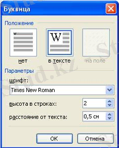Ж әрпіне құрастырылған аллитрацияны теріп жаз, меңзерді абзацтың басына апарып, Формат-Буквица сұхбат терезесінде әріптің орналасуының әдістерін таңда.