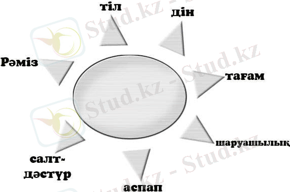 -Елімізге тән қасиеттерді (ерекшеліктерді) атау: Рәміз, тіл, дін, тағам, шаруашылық, аспап, салт-дәстүр т. б.