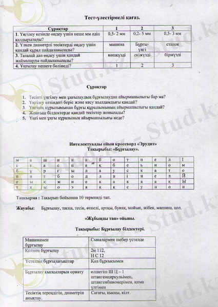4. Оқушыларды бұрғылау жұмысымен таныстыру.