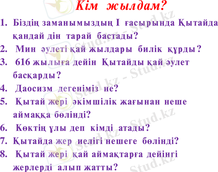 1. Орта ғасырлардағы Қытай мемлекеті(оқуға)