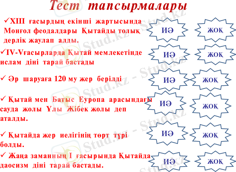 Көрнекілігі: интерактивті тақта, XI-XVIғасырлардағы Қытай,