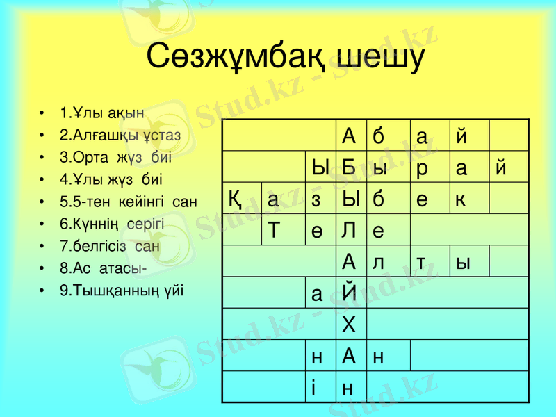- Абылай хан деген сөз шықты. Бүгінгі жаңа сабағымыздың тақырыбы шығады.