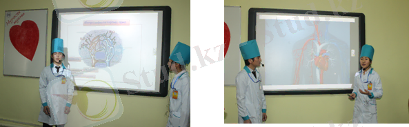 - электронды оқулықтан тапсырмалар орындау және оны жұмыс дәптерлеріне түсіру. (анатомия пәнінен дайындалған электронды оқулықтан тақырып бойынша интерактивті тақтада жұмыс жасап және орындалған тапсырманы анатомия пәнінен дайындалған жұмыс дәптеріне түсіреді. ) .