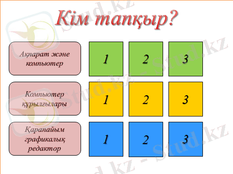 Ақпарат және компьютер бөлімінің сұрақтары: