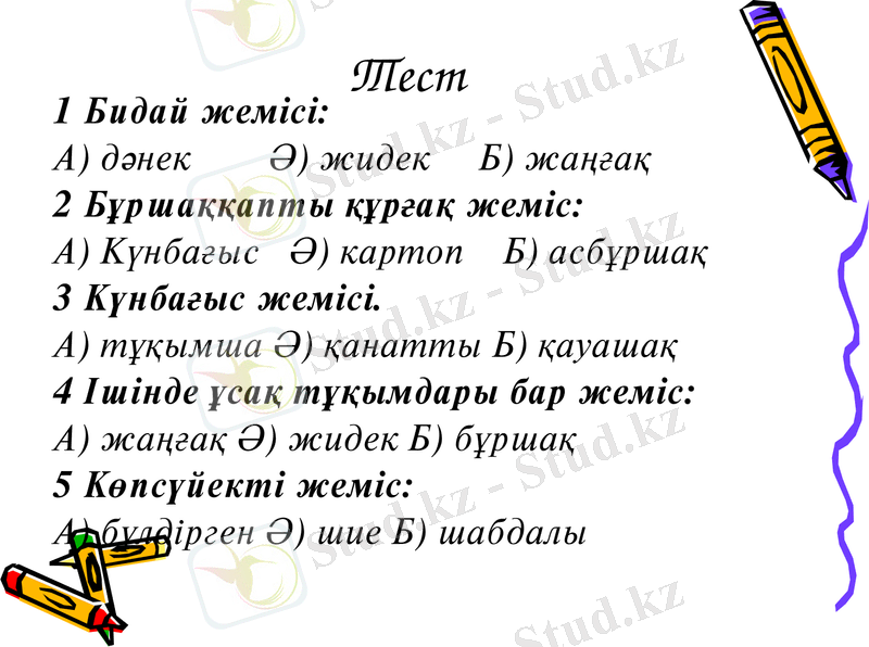 26 слайд. Мұғалім оқушыларға жемістерден не аламыз деп сұрайды.