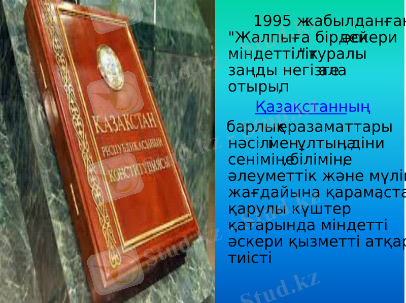 ҚР Жалпыға бірдей әскери міндеттілік туралы заң: жастарға таныстыру және әскери-патриоттық тәрбие