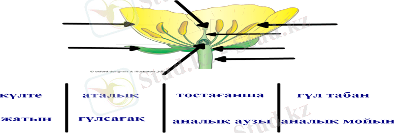 - гүлдің құрылысын анықтап, тиісті бөлігін гүлдің қасына апарып қояды;