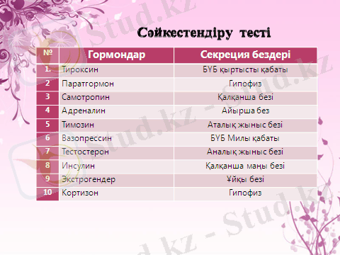 V. Сәйкестендіру тесті (Ішкі секреция бездері)