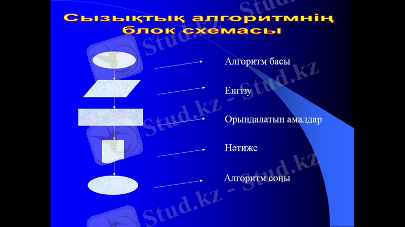 Сызықтық алгоритмдер . Сызықтық алгоритм қарапайым командалар тізбегінен тұрады. Әрекеттердің тізбектей орындалуын сипаттайтын алгоритм - сызықтық алгоритм деп аталады.
