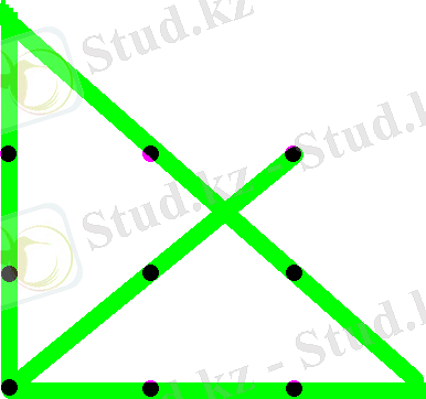 Төменде 9 нүкте берілген, осы нүктелерді 4 тік сызықпен біріктіреміз.