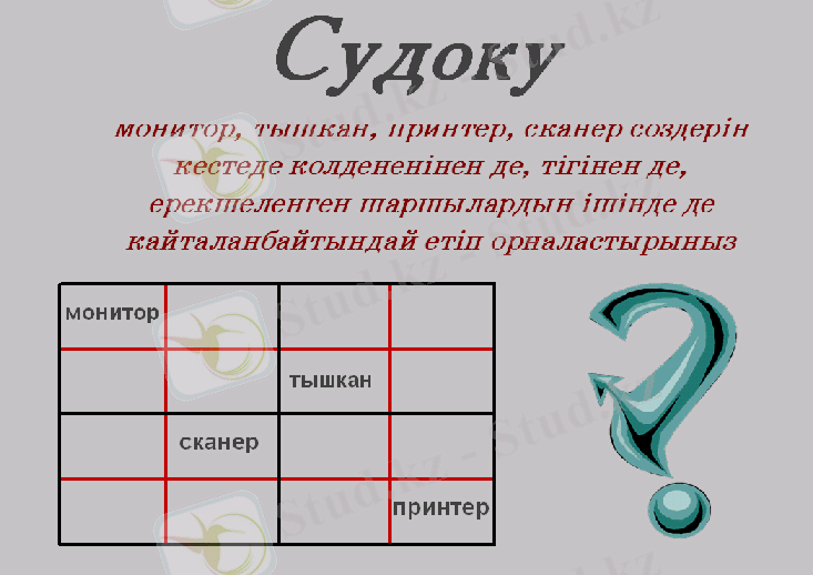 Ребусты шешкенде сұрақ шығады, студенттер сол сұраққа жауап берулері тиіс (2-сурет)