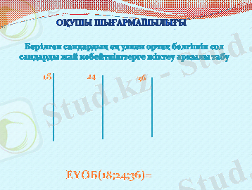 Білімділік . Берілген натурал сандардың ең үлкен ортақ бөлгішін таба білу, есеп шығаруда қолдану.