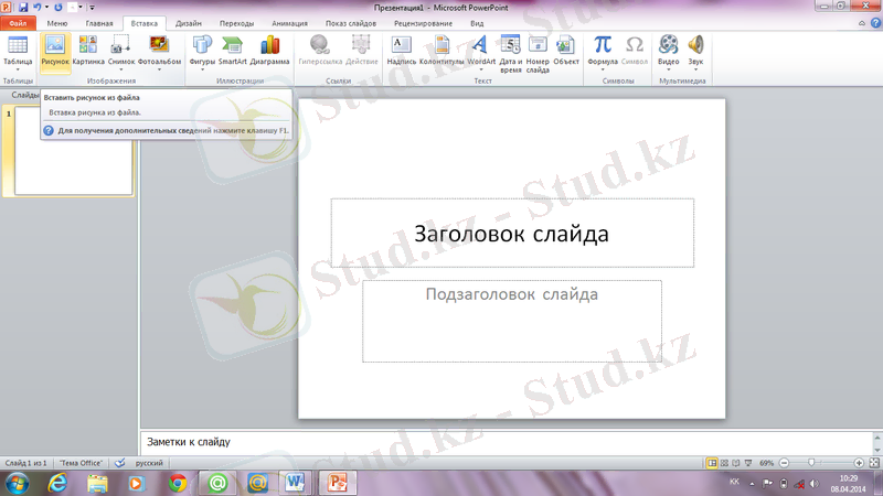 - Слайд белгіленуі(Разметка слайда) . Слайд белгіленуі ретінде слайдқа орналастыратын мәтін, сурет, диаграммалар т. б. формасын айтуға болады.