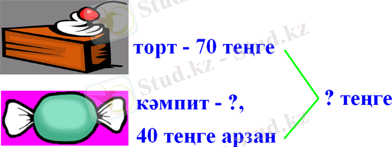 Ж: Кәмпит 30 теңге тұрады. Ш: 70 + ( 70 - 40 ) = 70 + 3 0 = 100