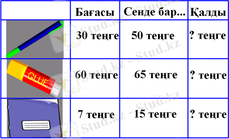 Ш: 70 - 40 = 30 Барлығы - ? теңге