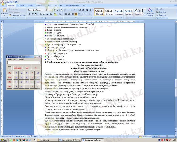 1) білімділік мақсаты: Оқушыларды калькулятор программасын таныстыру,