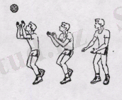 - Допты қабылдарда доптың ұшуын бақылау, оның бастың үстінде саусақ ұшының қарсы қимылымен қабылдау, ал қатты ұшып келе жатқан допты -екі қолмен төменнен білекпен;