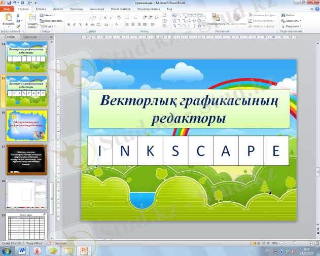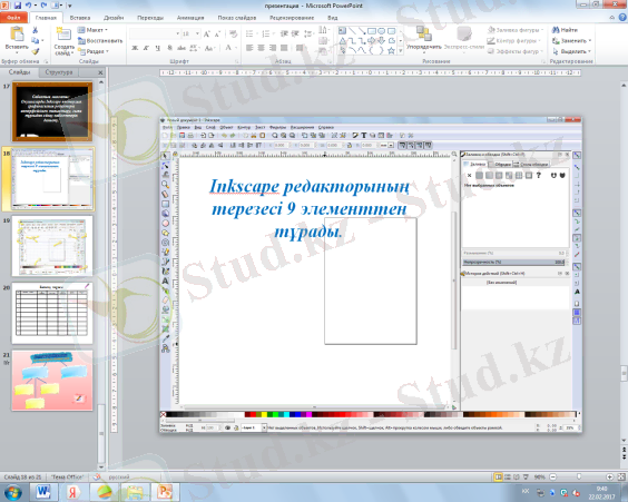 - Оқушылар Inkscape векторлық графикасының редакторының интерфейсімен таныс болады