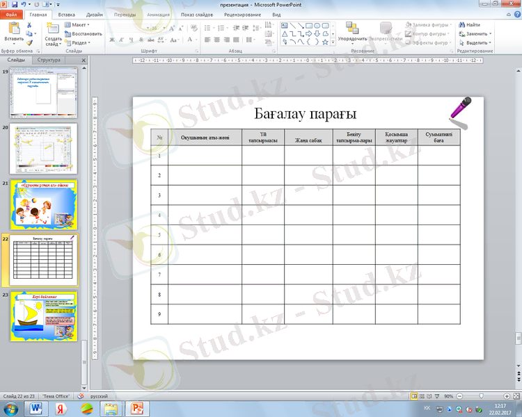 Оқушылар бағалау критерийлері бойынша өзін-өзі бағалайды