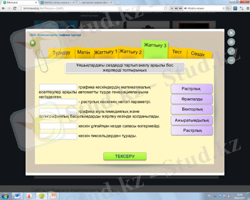 - «Bilimland» сйтының 3 жаттығуын орындайды.