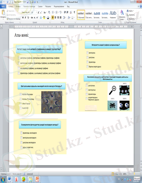 4-тапсырма. Компьютерде тәжірибелік жұмыс (112-бет)
