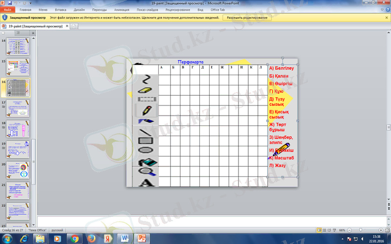 Перфокарта құралдардың аттарын интерактивті тақтада жазу.