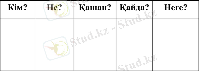 Оқушылар мазмұны бойынша кесте толтырады, талдайды, түсінеді.