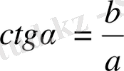 Анықтама. Тікбұрышты үшбұрыштың сүйір бұрышына іргелес жатқан катеттің қарсы жатқан катетке қатынасы сол бұрыштың катангенсі деп аталады. Оны