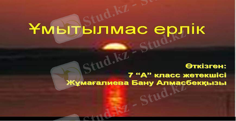 Оқушы: Осы сұрапыл соғыста жауды талқандап Ұлы Жеңіске жетуге қазақстандықтар да сүбелі үлес қосты. Жүздеген мың қазақстандықтар қолына қару алып, өз Отанының бостандығы үшін күресті.