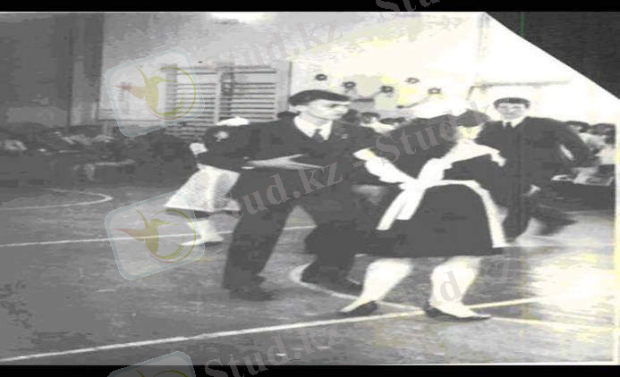 Вальс ойнап тұрады. Сахнада түлектер жұптасып билеп жүр. Олар жай, ақырын әңгімелесуде.