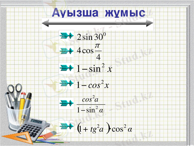 Қандай тригонометрия формулаларын білесіңдер? ( қарапайым сұрақ)